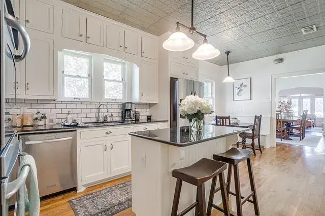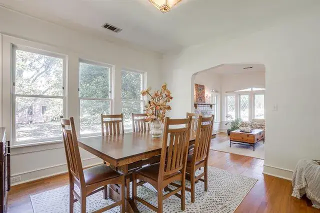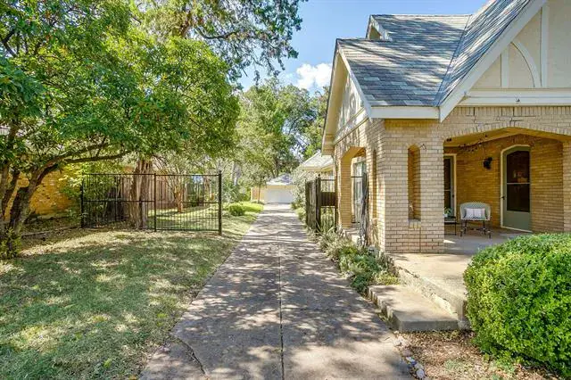 Classic Tudor-style home located on a rare, corner DOUBLE lot in the heart of Ryan Place. This storybook home perfectly balances historic charm with thoughtful updates. A covered side porch leads into a warm and inviting living room centered around a Batchelder-style fireplace, arched doorways, and original hardwood floors. Windows with detailed trim fill each space with soft, natural light, creating a timeless atmosphere throughout. The versatile floor plan offers two bedrooms and a full bath on each level, ideal for flexible living arrangements or guest space. The updated kitchen blends seamlessly with the home’s character and includes a gas cooktop, island, pantry, eat-in breakfast area, and gorgeous built-ins. The large, light-filled mudroom doubles as the laundry area and offers multiple possibilities—a sunny spot for plants, a convenient homework station, or even a cozy space for pets. Out back you will enjoy the expansive double lot as it provides ample space for play, gardening, or entertaining—along with a detached two-car garage and bonus space equipped with electricity and plumbing ready to make it what you want it to be. Recent updates include PEX plumbing, a tankless water heater, foundation repair with transferable warranty, and fresh interior paint throughout. Nestled on one of Ryan Place’s beloved tree-lined streets, this home offers more than just location—it’s part of a true community, known for its sidewalks, porch gatherings, and cherished traditions like the upcoming Candlelight Christmas Home Tour. Conveniently located near TCU, Magnolia Avenue, the Medical District, and Downtown Fort Worth, this home captures the best of Fort Worth living in one of its most coveted neighborhoods.