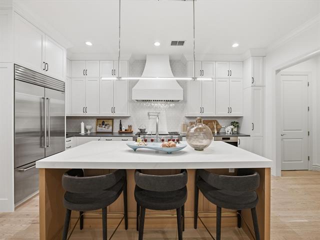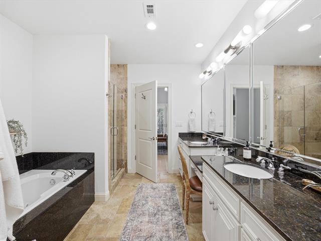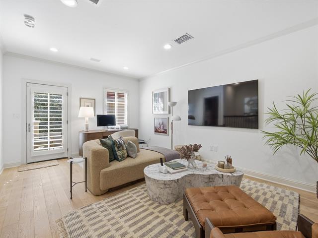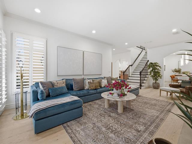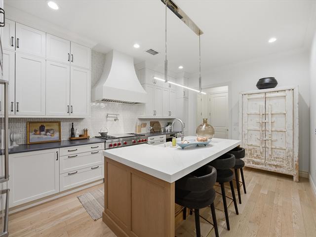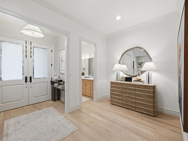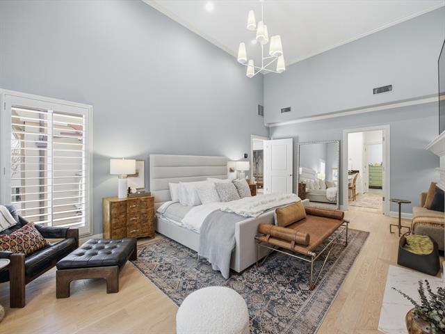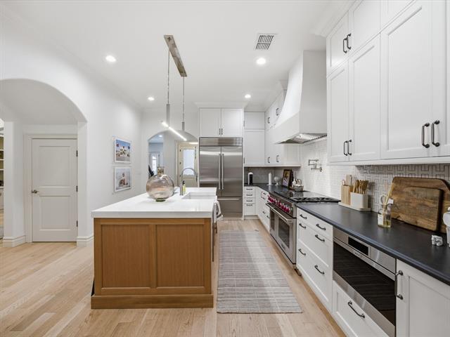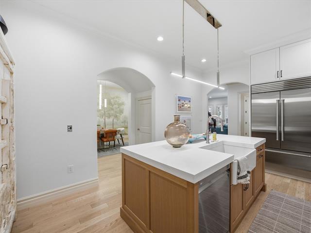 Enjoy a maintenance-free lifestyle in this stunning SO 7 townhome that’s been fabulously transformed into one of the most sought after units in So 7! Located in the most desirable area in the addition with a quiet setting nestled away from much of the traffic and noise with GREAT trees and an extra parking space in front! Interior is no less impressive with all new white oak hardwoods, spacious living area with access to charming front courtyard, a FABULOUS kitchen complete with all Wolf appl (including an 8 burner gas range, a steam oven and Sub Zero built-in), gorgeous paint colors and edgy statement lighting throughout, PLUS an elevator and new recirculating hot water system! All ensuite bedrooms with the most peaceful master bedroom featuring soaring high ceilings, a pretty fireplace; as well as a quaint outdoor loggia off the upstairs living that offers an ideal spot to unwind!