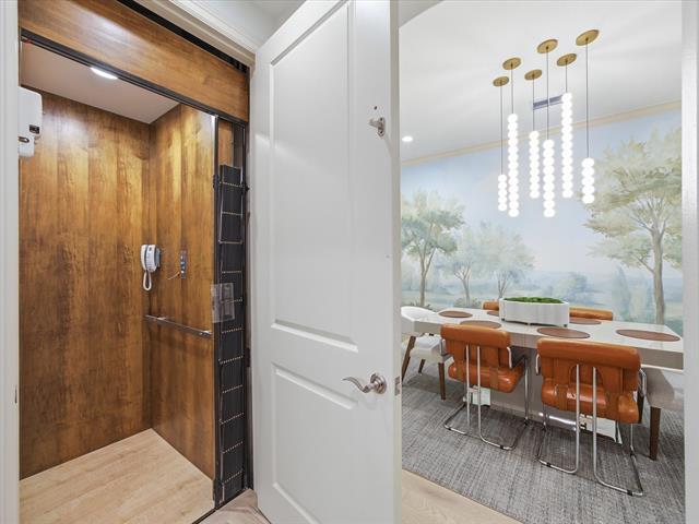 Built-in Features, Cathedral Ceiling(s), Chandelier, Decorative Lighting, Double Vanity, Eat-in Kitchen, Elevator, Flat Screen Wiring, High Speed Internet Available, Kitchen Island, Loft, Natural Woodwork, Open Floorplan, Pantry, Vaulted Ceiling(s), Walk- In Closet(s)