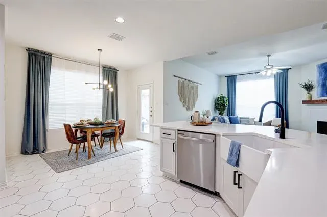 The open-concept heart of the home has been beautifully updated! It features pristine white cabinetry, white quarts countertops, a gorgeous hexagon backsplash, white hexagon tile flooring, farmhouse sink, modern matte black fixtures, stainless steel appliances, and a large peninsula with bar seating. The former formal dining room has been smartly converted into a private home office, enclosed by elegant glass French doors—perfect for remote work. Relax in the generous primary bedroom, featuring a large en-suite bathroom area with dual sinks and a massive walk-in closet. Secondary bathrooms boast on-trend facelifts featuring a warm wood-tone vanity, showcasing a bold green accent wall, classic white subway tile, and elegant gold-tone hardware. The second floor offers three large bedrooms and a fantastic game room. This home is perfectly situated within walking distance to the Keller ISD Elementary School and near fantastic restaurants and shopping, offering incredibly easy highway access for a breezy commute. With its great floor plan and move-in-ready modern updates, all that''s left to do is unpack. Welcome home!