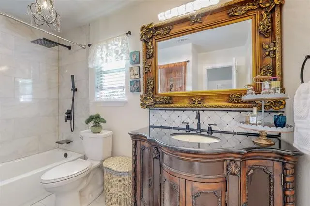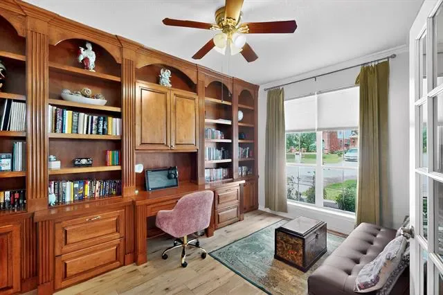 This light and bright home features a desirable open floor plan, a spacious living area that flows into an entertainer’s kitchen with granite countertops and stainless steel appliances. The downstairs primary suite offers a private retreat, and the home also located on the first floor is a private office that can be used as a study, library, or even an additional bedroom. Upstairs offers a versatile game room or second living area along with three additional bedrooms. Step outside to a covered patio overlooking a large backyard — perfect for outdoor gatherings, grilling, or simply unwinding.