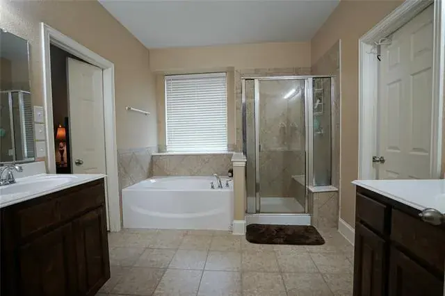Welcome Home! This meticulously maintained home has 5 full bedrooms, plus an office, 4 full bathrooms, and numerous walk in closets! The primary bedroom is down and has a private bath with garden tub, separate shower, double vanities, and a large walk in closet. The perfect in law suite, or guest bedroom is also downstairs and is located next to a private bath and has a walk in shower that is handicap accessible. A wall of windows and cathedral ceilings welcomes you as you enter this home. The living area has a gorgeous stone fireplace with gas logs, and room for a sectional. The kitchen features stainless appliances, double ovens, an island, and lots of cabinet space! A formal dining at the front of the home, and breakfast area next to a covered patio in the backyard. Upstairs you will find 3 more bedrooms and 2 full baths. There is a second living area which is perfect for a game room and the 5th bedroom could be utilized as an additional living room, media room, or a dream bedroom for that special teen! This home is located in the desirable Saratoga neighborhood, on a cul de sac street, complete with resort style pool and playground within walking distance. Northwest ISD! Don’t miss out on this opportunity!