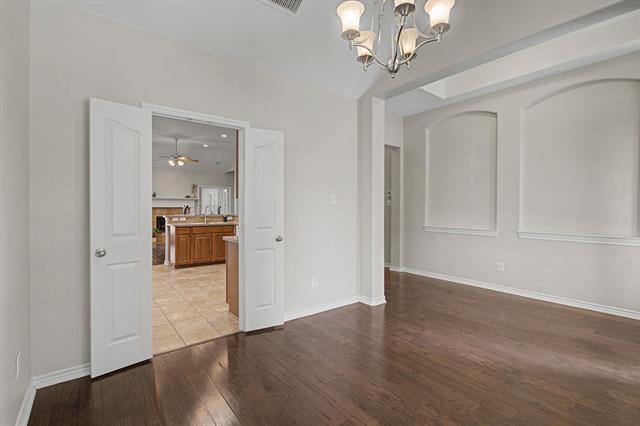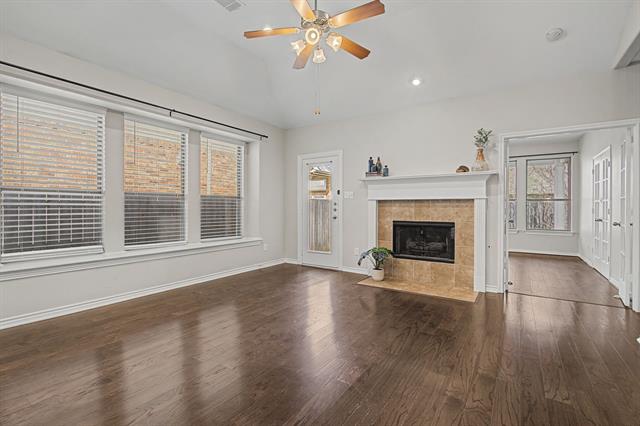 Located in the master planned community of Saratoga in desirable North Fort Worth, this 4 bedroom, 3 full bath 1.5 story home has it all. Luxury vinyl plank flooring welcomes you inside this highly functional floor plan sprinkled with high-end touches like trayed ceilings and art niches. The kitchen boasts generous counter space, a breakfast bar and gas cooktop and overlooks the living room featuring a lofted ceiling and cozy fireplace, perfect for family time and large group entertaining. The split bedroom design offers a private primary suite, complete with a walk-in closet, an en-suite spa-inspired bathroom with dual sinks and glass walk-in shower. This home also features a generous sized dining room and 3 bedrooms downstairs, plus a flex space with French doors adjacent to the primary suite that would be perfect as a sunroom, nursery or office. The large upstairs room with closet and full bathroom offers several flexible space opportunities – second master to support a multi-generation living, a playroom, or second living area. The covered wrap-around back patio extends your living space outdoors – perfect for kids, pets and relaxing cookouts with family and friends. Conveniently located in award winning Northwest ISD. This home offers a spacious, flexible and functional layout for a growing family, multi-generation living and entertainment. Finally, step outside and enjoy quiet walks through tree-lined streets. This location allows for quick access to one of the many trails in the community that leads to the neighborhood pool and community amenities designed for connection and recreation. Minutes from HEB, shopping, dining, and major highways for easy to Alliance, Keller, Roanoke, and surrounding areas. If you are searching for homes for sale in Fort Worth 76244, a 4 bedroom home in Northwest ISD, or North Fort Worth near Alliance, this home deliver’s location, flexible space in a wonderful master planned community.