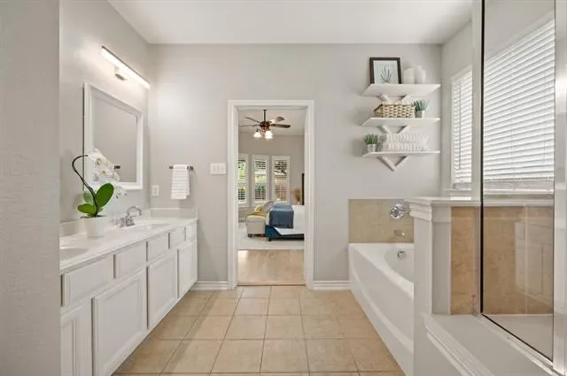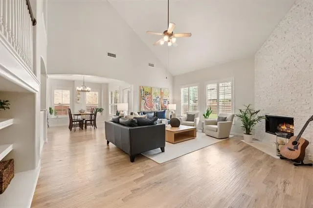 MULTIPLE OFFERS RECEIVED. HIGHEST AND BEST DUE BY 2PM ON MONDAY THE 27TH. *OPEN HOUSE this SUNDAY the 26th from 1-3.*. Welcome home to an impeccably maintained full-brick home tucked away on a quiet cul-de-sac in the highly sought-after Saratoga community. This spacious layout offers 4 bedrooms, 3.5 baths, 3 living areas, a private office, media room, and a versatile bonus room ideal for home gym, craft room, or holiday storage. The interior has been beautifully refreshed with a light neutral palette and all new flooring in 2025, featuring stunning white oak hand-scraped hardwoods and plush new carpet throughout. The heart of the home is enhanced by a newly updated fireplace with custom stonework, adding character and a cozy focal point. Additional thoughtful upgrades include plantation shutters, updated fixtures, new garage doors, and a tankless water heater ensuring efficiency and modern appeal throughout the home. Designed with both everyday living and entertaining in mind, the home offers generous indoor and outdoor spaces. Step outside to a covered patio and welcoming front porch, ideal for relaxing evenings or hosting gatherings. The oversized lot-just shy of a quarter acre- features a fenced side yard that functions perfectly as a private pet run, offering both convenience and privacy. Located within the prestigious Northwest ISD and just a short walk to highly acclaimed Kay Granger Elementary, the home combines luxury with unbeatable convenience. Residents of Saratoga enjoy a vibrant, family-friendly atmosphere with exceptional amenities including a community pool, playground, miles of scenic jogging trails, and year-round neighborhood events that truly make this more than just a place to live-it’s a lifestyle. Meticulously cared for and thoughtfully updated, this is a rare opportunity to own a move-in-ready home in one of the area’s most desirable communities. Book a showing at your own risk- you will fall in LOVE!