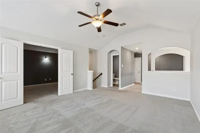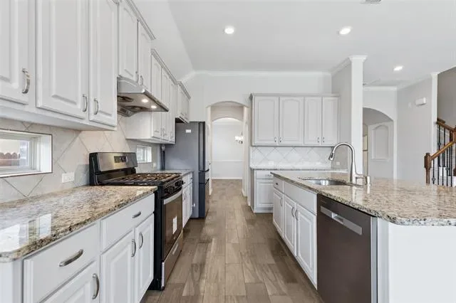 This beautifully maintained home offers striking curb appeal and a thoughtfully designed layout that blends comfort with sophistication. Inside, you’re welcomed by an expansive, light-filled interior accented by soft neutral tones and upgraded wood-look tile flooring that flows seamlessly through the main living areas. The elegant formal dining room connects effortlessly to the kitchen and breakfast space, creating an open setting ideal for entertaining or everyday gatherings. The chef-inspired kitchen features a gas range, abundant cabinetry, and a large center island that overlooks the inviting family room and cozy fireplace — a perfect setup for hosting or relaxed evenings at home. Tucked privately at the back of the home, the main-level split primary suite offers a peaceful retreat complete with a spa-like ensuite bath featuring a soaking tub, walk-in shower, and spacious walk-in closet. On the opposite side of the first floor, a secondary bedroom and full bath provide flexibility for guests, multigenerational living, or a dedicated home office. Upstairs, multiple entertainment spaces await, including a generous game room and dedicated theatre room. Two additional bedrooms — both with walk-in closets — share a Jack-and-Jill bath, plus an added half bath for convenience. Step outside to a covered patio overlooking a spacious backyard with room to design your ideal outdoor oasis — whether that includes a garden, play space, or future pool. Situated in the highly sought-after master-planned community of Sendera Ranch, residents enjoy resort-style amenities, pools, parks, walking trails, and community events. Conveniently located with easy access to major highways, Dallas Fort Worth International Airport, the Fort Worth Stockyards, and Eagle Mountain Lake — plus abundant dining and shopping options nearby — this home delivers the ideal balance of lifestyle and location. Schedule your home tour today!