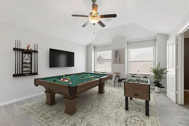 Split primary suite tucked at the back offers privacy with a soaking tub, walk-in shower, dual sinks, and a spacious walk-in closet. Secondary bedroom and full bath downstairs provide the perfect setup for guests, multigenerational living, or a home office. Upstairs includes a large game room, dedicated media room, two bedrooms with walk-in closets and a Jack-and-Jill bath, plus an additional half bath for convenience.