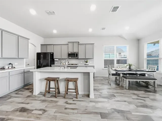 NEW PRICE DROP, PLUS a $5000 BUYER INCENTIVE with a full price offer! This incentive could be applied to buyer''s closing costs or buy down the interest rate. This stunning 4-yr-old home has 5+ years remaining on the builders WARRANTY! At a whopping 3,008 sf, this amazing home offers everything your family will ever need. The moment you enter, you''ll be captivated by a soaring ceiling, graceful architectural arches, and art niches that can showcase your personal style. The open concept floor plan is perfect for both everyday living and entertaining guests. This well-appointed home features 4 spacious bedrooms, 3 full and 1 half bathrooms, a dedicated study with French doors, an exciting gameroom, and a fully equipped media room for movie nights the whole family will love. Cozy up by the gas fireplace on cool evenings, and enjoy the beauty of wood-look ceramic tile throughout—combining timeless style with easy maintenance. The bedrooms feature neutral carpet for comfort and warmth. The thoughtful layout places the primary suite, guest bedroom and full bath downstairs for convenience, while the additional bedrooms upstairs include a Jack-and-Jill bath. But the lifestyle here extends far beyond your front door. This award-winning community offers resort-style amenities including 4 pools, 5 playgrounds, 2 basketball courts, a clubhouse, 2 soccer fields, 2 baseball fields, a hockey rink, gazebo, serene ponds, &' miles of scenic paved trails. Your family will never run out of ways to stay active and connected. Perhaps the biggest advantage? This home sits within the highly rated Northwest ISD, with 3 excellent schools right in the community—a dream for families prioritizing education. SPECIAL BONUS: The billiards table and accessories, media rm equipment, &' children''s play set may all convey!