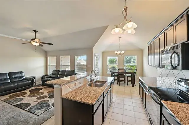 Charming 3BR 2BA single-story home in Sendera Ranch East. Features 1521 sqft with an open floor plan and plenty of natural light. The kitchen offers granite counters, a breakfast bar, a pantry, and sleek appliances. Living and dining areas flow seamlessly for easy entertaining. The primary suite includes a walk-in closet, ceiling fan, dual sinks, a garden tub, and a separate shower. Secondary bedrooms also feature walk-in closets and ceiling fans. Enjoy a covered patio, fenced backyard, and 2-car garage for functional and outdoor living. Community amenities include jogging paths, playgrounds, and a community pool. Conveniently located in Northwest ISD near shopping, dining, and commuter routes. Built in 2013 and move-in ready.
