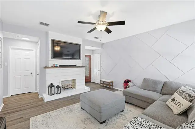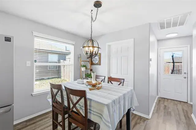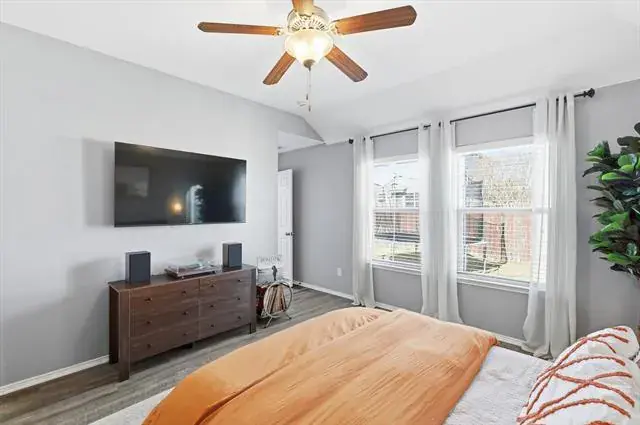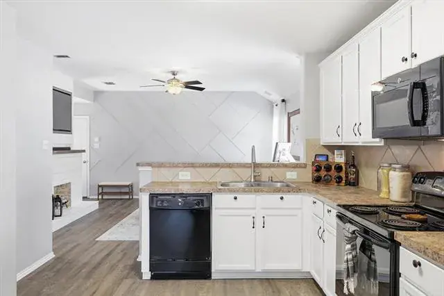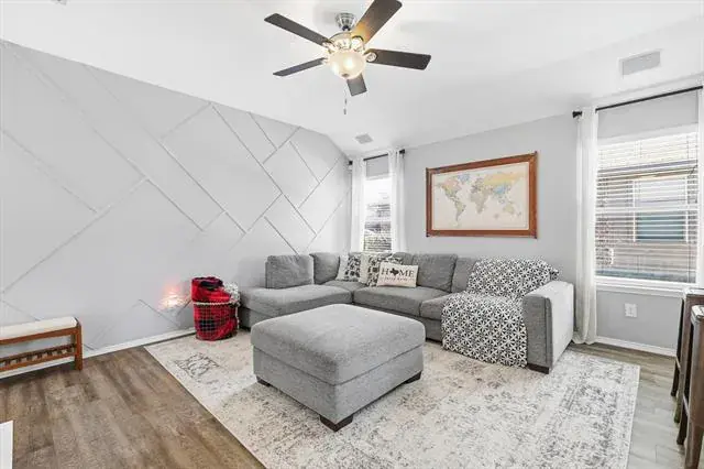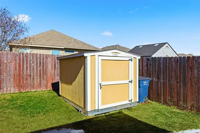 From the moment you step onto the front porch, this home feels warm and inviting, with charming details that set the tone for what’s inside. The entry opens into a cozy living space centered around a fireplace, creating a natural gathering place for evenings at home. Soft natural light flows through the space, connecting seamlessly to the kitchen and breakfast area, where everyday meals and weekend mornings feel equally special. The kitchen offers plenty of workspace and storage, making it easy to cook and host. The home is thoughtfully wired throughout for internet, making it easy to work, stream, and stay connected in every room. The primary bedroom is tucked away for privacy and comfort, offering a relaxing retreat at the end of the day, while the secondary bedrooms provide flexible space for guests, work, or hobbies. A dedicated utility room adds convenience and thoughtful function to daily routines. The home is also pre-wired for a security system, with doors and windows already set up for alarm monitoring, providing an added layer of peace of mind. Out back, the yard creates the perfect spot for outdoor dining, morning coffee, or evening conversations under the Texas sky. A storage shed adds practical space for tools, toys, or weekend projects, while the grassy yard offers room to play, garden, or simply unwind. Located in a community known for its amenities, residents enjoy access to pools, playgrounds, walking trails, and open green spaces that encourage time outdoors and connection with neighbors. Whether it’s a morning at the park, an afternoon at the pool, or a peaceful evening in your own backyard, this home blends comfort, charm, and lifestyle in all the right ways. This home is a place that feels easy to settle into and even easier to love! Come check it out yourself!