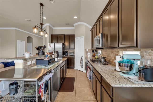 The home sits on a generous ¼ acre lot, fully fenced, with an extended covered patio and plenty of room to add a pool or create your dream backyard retreat. The 3 car garage includes epoxy flooring, and the home is finished with crown molding, brick exterior, gutters, and an original roof with updated shingles and vents. Great location, close to shopping, schools, and restaurants! This property blends comfort, style, and functionality, truly a wonderful place to call home.