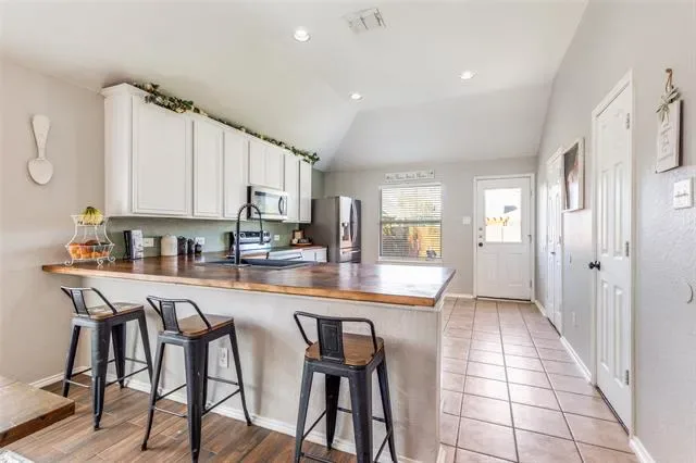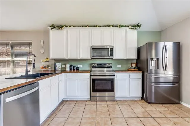 Located in the Sendera Ranch community and zoned to Northwest ISD, this move-in ready 4-bedroom, 2-bath home offers the perfect balance of comfort, style, and functionality. The thoughtfully designed floor plan creates both space and privacy, making it ideal for everyday living. Inside, you’ll find a bright, welcoming interior with updated fixtures and a beautifully refreshed kitchen that truly stands out. Featuring butcher block countertops, a farmhouse sink, and a full suite of stainless steel appliances—including a smart oven with air fry capabilities—this kitchen is both stylish and functional, perfect for everything from weeknight dinners to entertaining guests. The spacious living area flows easily for gathering and hosting, while the secondary bedrooms offer plenty of room to spread out. The primary suite serves as a relaxing retreat with a large walk-in closet and private en-suite bath. Step outside to a large backyard with plenty of space to enjoy, complete with a patio that’s perfect for relaxing, entertaining, or unwinding after a long day. Sendera Ranch offers an incredible lifestyle with multiple community pools, basketball courts, fishing ponds, and miles of walking and biking trails. This is one you don’t want to miss!