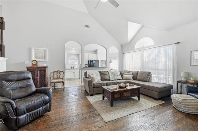 Discover this beautiful 5-bedroom, 3-bathroom home in Haslet, TX, offering space, style, and flexibility for today’s living. The main level features an inviting open floor plan with soaring ceilings and stunning hand-scraped hardwood floors. The kitchen opens seamlessly to the living room and includes a gas cooktop, creating the perfect setting for cooking and entertaining. Two bedrooms and two full bathrooms are conveniently located downstairs.