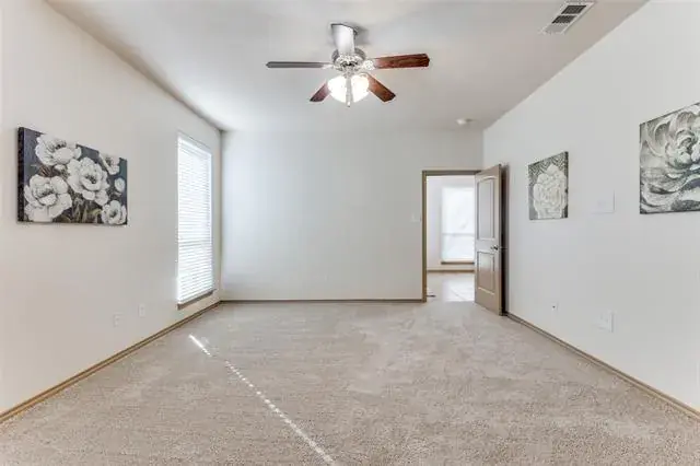 space between bedrooms while opening to the living room. Backyard has covered patio with nice-sized yard perfect for entertaining. Sendera Ranch is a master planned community with three pools, parks, miles of jogging trails, and on-site elementary and middle schools. Excludes: The refrigerator in the garage. Kitchen fridge and washer will convey with acceptable offer.