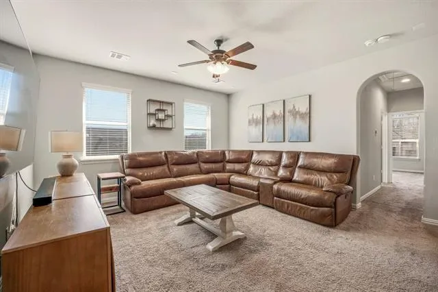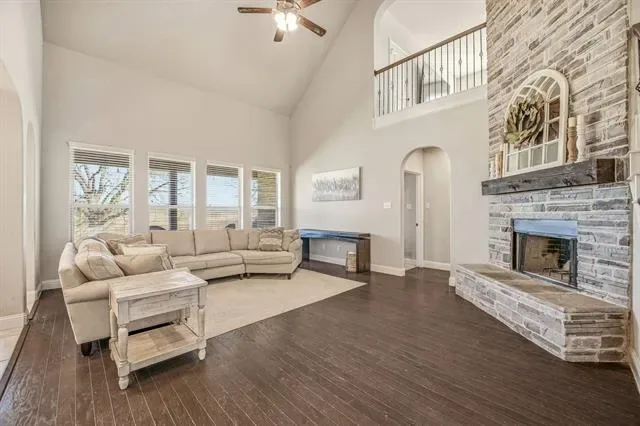 Welcome to this beautifully designed home in sought-after Burleson ISD, where thoughtful architecture meets everyday comfort. Perfectly positioned on a peaceful corner lot, this residence offers the ideal balance of privacy and convenience – tucked away in a quiet neighborhood yet just minutes from shopping, dining, and an easy commute into DFW. Step inside to an open floor plan enhanced by soaring vaulted ceilings and charming architectural arches that give the home a custom, timeless feel. At the heart of the main living area, a stunning stone fireplace with mantle creates a warm, inviting focal point – perfect for gathering with family and friends. Natural light flows effortlessly throughout the space, highlighting the seamless connection between the living room, dining area, and kitchen. The bright, timeless kitchen features crisp white cabinetry, white quartz countertops and island, making it both stylish and functional – a space where everyone naturally comes together. Whether you’re hosting or enjoying a quiet night in, the layout is designed to fit your lifestyle. With 4 spacious bedrooms and 2.5 baths, this home offers flexibility for growing families or guests. A private office with French doors provides an ideal work-from-home setup, while an extra living room and upstairs loft space offer endless possibilities – second living area, game room, guest retreat, or relaxing escape. The balcony overlook adds a sense of openness and architectural elegance, connecting the spaces beautifully. Outside, enjoy the serenity of the corner lot with an open feel and nearby neighborhood park, perfect for walks and outdoor fun. A brand-new roof was installed in March 2026, offering added peace of mind for the next owners. This home truly has it all – space, style, location, and character – ready to welcome you home.