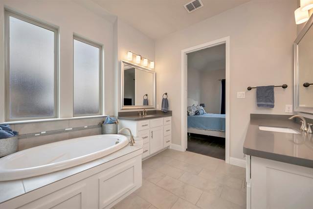 Truly a MOVE IN READY property with an incredible amount of 2025 upgrades, updates, and under-the-stairs-storage. This is not your usual REALTOR hyperbole…this house really is incredibly clean and beautiful. You really do have to come see this one. The floorpan of this home checks all the boxes! Three Car Garage with Epoxy Floors – The First floor has two bedrooms and two full bathrooms with an option for a fifth bedroom if needed. The open concept blends the stunning stainless kitchen, high-ceiling dining space, and giant living room into a seamless space at the center of the action. From the kitchen, you’ll have access to a walk-in pantry, 36 inch high output gas cooktop, ultra-quiet Kitchen-Aid Dishwasher, and spacious island with farm-style sink. The open staircase is stunning with all hardwood treads and white millwork. The backyard features an amazing 750ft of stamped concrete patio space with a dedicated circuit for a hot tub or sauna and gas stub for a future outdoor gas fixture. Even with all of that, there is still enough room for a play area, pet area, or garden. This area also had drainage improvement and new sod installed. All of the front planters have been expanded, the drainage system has been improved, and the sod replaced. The neighborhood of Seventeen Lakes features several catch and release ponds, extensive walking trails, and neighborhood parks and pool. Northwest ISD – Cox ES – Tidwell MS – Byron Nelson HS