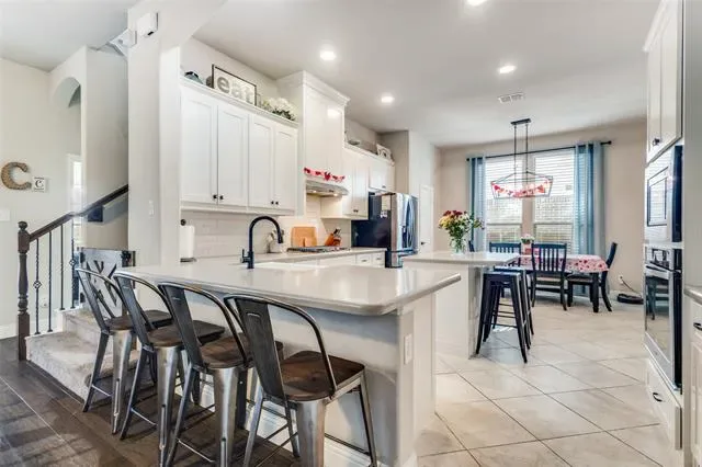 Welcome to Seventeen Lakes in Roanoke, Texas, where comfort, style, and everyday convenience come together in this impressive five-bedroom, three-bath home designed for modern living and memorable moments. Set within a vibrant, sought-after community, this residence offers generous living spaces paired with an open and inviting floorplan that flows effortlessly from room to room. The chef’s kitchen anchors the heart of the home, opening to the living area with a cozy fireplace and adjoining dining spaces, making it ideal for both everyday living and entertaining. Thoughtfully designed, the layout provides excellent separation between the private primary suite and the secondary bedrooms, with the primary retreat featuring a luxurious ensuite bath that creates a peaceful escape at the end of the day. Entertainment takes center stage with a dedicated media room and game room, offering endless options for movie nights, game days, or simply unwinding at home. Step outside to a perfectly sized, fenced backyard that’s easy to enjoy and maintain, ideal for pets, play, or quiet evenings outdoors. Conveniently located near area amenities, shopping, dining, and more, this exceptional home blends luxury, functionality, and location, creating a place where lasting memories are ready to be made.