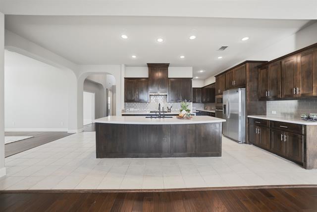 Elegant popular Drees Brendan model in the Award Winning Northwest ISD & desirable SEVENTEEN LAKES COMMUNITY welcomes you home to a wide open foyer & radiating steps that lead up to the flex living game room, media room, two bedrooms and a full bath. Lower level boasts private primary bedroom and ensuite bath which invites you for total relaxation after a long day at work so enjoy your soaking tub or separate shower, separate vanities, extra storage, linen closet, and medicine cabinet. Kitchen is beyond the imaginable especially if you like to cook, bake, and entertain. Large kitchen island, lots of counter space, tons of cabinets, gas cooktop, APEC WATER FILTRATION SYSTEM, huge walk in pantry, extra office nook, and pull out recycle bin. Family room has an abundance of natural light beaming from the tall windows. Cozy up to your gas fireplace during those chilly mornings or just turn on for ambiance. If you need to work from home, a private office awaits you with French doors for total privacy. Home even has a guest bedroom down with a full bath. Brand new roof was installed February 2026. Refrigerator is included. The Seventeen Lakes Community is a resort living atmosphere boasting two pools, splash pad, baby wading pool, BBQ’s, covered sitting areas, two playgrounds, outdoor library stations, and walking trails that meander around many catch and release fishing lakes. The sunsets will not disappoint. The location is close to shopping, restaurants, quaint historical town of Roanoke, water parks, sand volleyball courts, skate park, tennis courts, golf courses, lakes, and DFW airport.