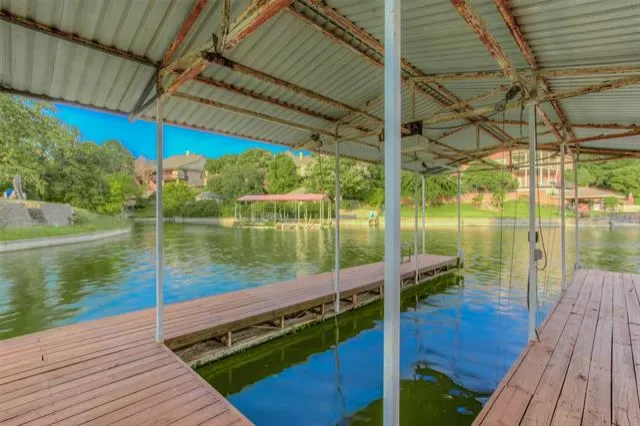 This Eagle Mountain Lake Estate includes a spectacular home with over 5300′ air conditioned sq ft under a new roof & gutters installed Spring 2025, 4 bedrooms, 3.5 baths, a swimming pool, cabana, tennis-basketball-volleyball sports court, children’s overnight playhouse, a field perfect for a game of touch football or soccer, wooded hiking areas, go-cart riding roads, vegetable garden, separate garage-workshop, boat dock, jet ski lifts and more variety of shade trees, flowering trees, and native trees than you can count on both hands! Wow, that’s a property full of Blessings. All this for $2,449,000! This property sits on 3.5 lush acres. The water at the dock is almost 9′ deep (when the lake is full) and is located on one of the deepest sloughs on the whole lake. A 5-minute drive to the nationally known Fort Worth Boat Club. With a Doctor on one side and a Pastor on the other, can it get any safer and more secure than that?! Come explore and Discover Additional Benefits Hidden in Plain Sight for this property is as sweet as ‘TUPELO HONEY’.
