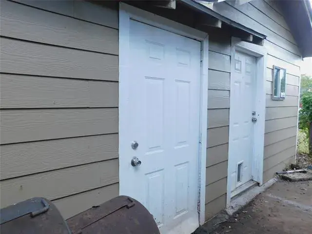 Corner lot property with main house and either a guest home or rental attached. The main home has 3 bedrooms and 1.5 baths, covered patio and storage areas, with a Large bonus room upstairs. The guest house has separate entry with 2 bedrooms, 1 bath, kitchen and living room. Corner lot, so ample parking. Main home has central HVAC. Guest unit has window units.