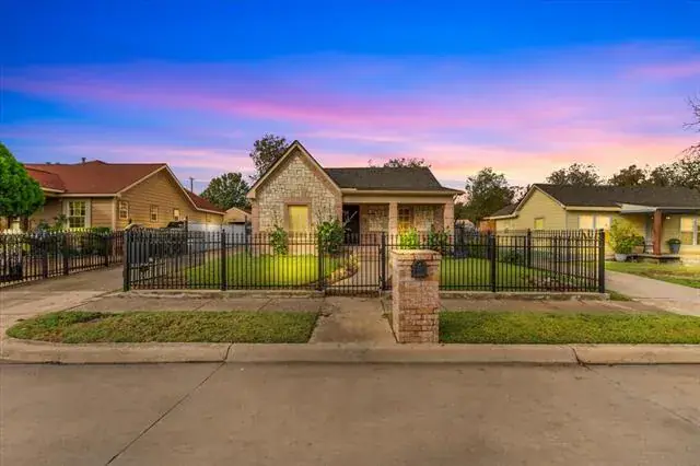 Charming brick home with the 3 car garage + restroom being the highlight of the home- perfect for hobbies, storage, a workshop, or even hosting your own small events and gatherings. Electric gate and covered front porch to enjoy a coffee outside. Back yard is perfect for family cookouts and parties. Minutes away from TCU, downtown, Clearfork and shopping centers. The half bath is not attached to the home and is in the 3 car garage. Great location, flexible space, and endless potential.