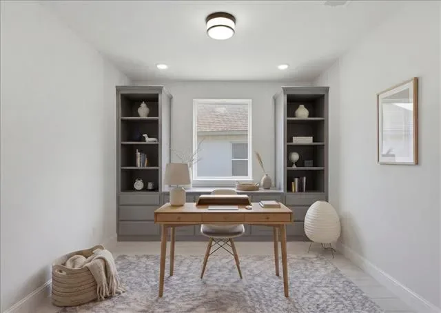 A dedicated study or playroom with built-ins offers flexibility for a home office, kids’ area, or additional living space. The private primary suite includes a large walk-in closet and a well-appointed bath, while one of the secondary bedrooms features its own en-suite bathroom—ideal for guests or multigenerational living.