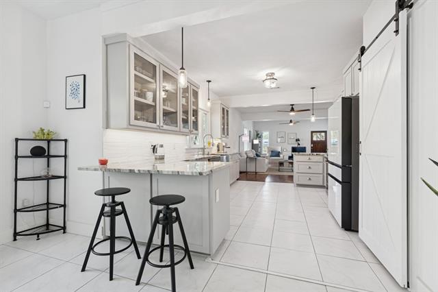 This incredible corner lot home is move in ready! You will walk into an open floor plan that boasts a large living room and kitchen. The kitchen features stainless farm sink, gas range, convection microwave, large pantry, and granite breakfast bar. The home offers a spacious primary bedroom with an ensuite bath with a large walk-in shower. The two other bedrooms are large and share a beautiful guest bath with original ship lap walls and a chandelier. One of the guest rooms can be converted into an office, if needed. Outdoor areas consist of a wonderful front porch, covered back patio with an open deck. The perfect space for gathering and entertaining.