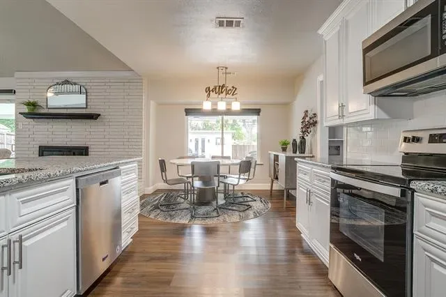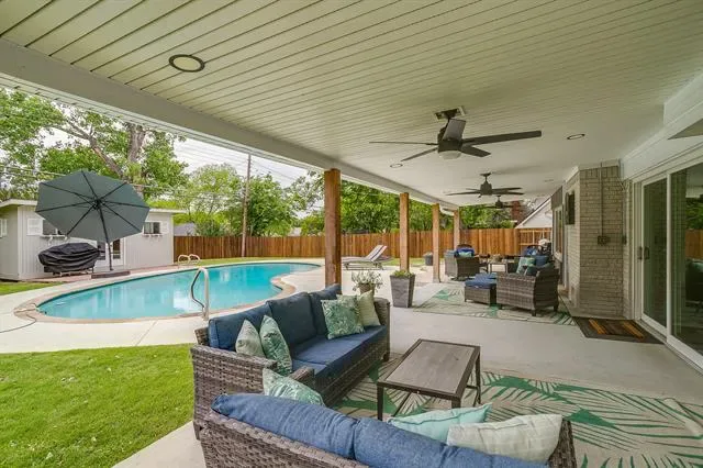 Welcome to 3533 Wren Ave! This thoughtfully updated 4-bedroom, 2.5-bathroom home features modern conveniences with traditional charm. The open concept interior boasts vaulted ceilings, granite countertops, stainless steel appliances, a cozy gas fireplace, tankless water heater, and custom California Closets. Situated on a large treed lot with an oversized covered patio and sparkling pool, perfect for Texas summers. Custom pool house with electricity, or turn it into your dream office or studio. The downstairs primary bedroom is complete with a walk in closet, dual vanities, and a walk in shower. New roof, new gutters, recent mechanical updates include two full HVAC replacements (2022), and home plumbing system recently upgraded with professional pipe lining for long term reliability making this home truly move in ready! Conveniently located to major highways, local retail, and dining while also quietly tucked into this special neighborhood steps away from local parks.