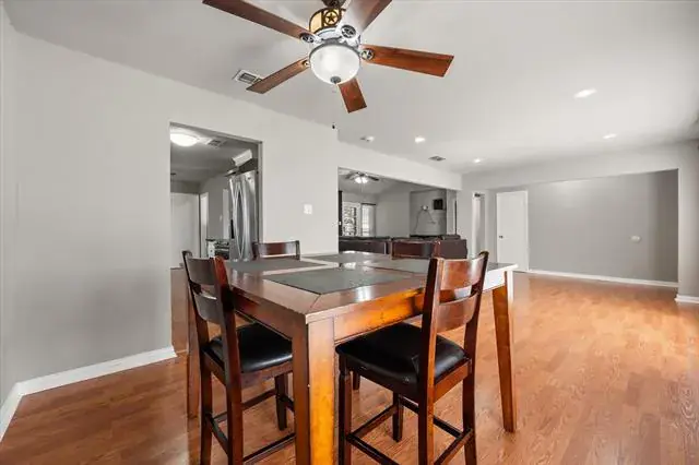 Inside, you’ll find a natural light-filled, open-concept layout designed for effortless living and entertaining. Recent updates include fresh interior paint and brand-new flooring in the guest bedrooms, creating a move-in-ready feel throughout. Step outside to your own private backyard retreat featuring a fenced sparkling in-ground pool, ideal for cooling off during Texas summers or hosting memorable gatherings. The rear entry with gate also gives that added privacy!