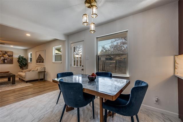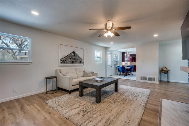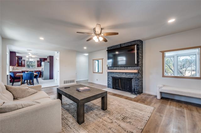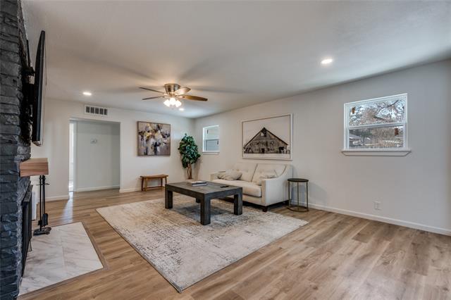 This fully renovated 3-bedroom, 2-bathroom home in a well-established Fort Worth neighborhood offers a blend of modern design and everyday functionality, with easy access to major highways. The kitchen is equipped with brand-new quartz countertops, a gas stove, stainless steel dishwasher, wine cooler, fridge and a generously sized pantry. A double-sided fireplace connects the main living room to a bright sunroom, creating a warm, inviting atmosphere ideal for both relaxing and entertaining. Home comes with a stackable washing machine and dryer + 65 inch smart TV. The home features fresh paint, new luxury vinyl flooring, updated lighting fixtures and ceiling fans throughout. Both bathrooms have been fully renovated with new tile, vanities, and fixtures. Brand-new double-pane windows provide improved energy efficiency and comfort year-round. Additional highlights include a spacious backyard and completed foundation work with a transferable warranty. This move-in ready property delivers on quality, space, and location, schedule your showing today.