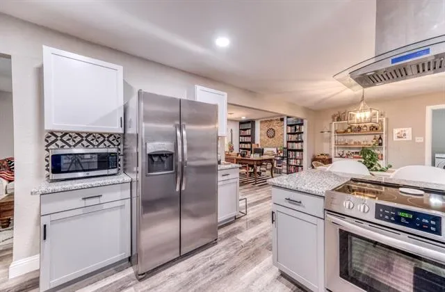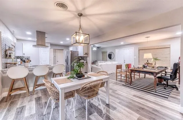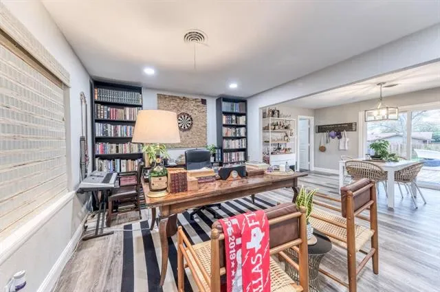 This beautifully remodeled 3-bedroom, 2-bath home with a dedicated office is nestled in a charming, established neighborhood known for its mature trees and welcoming atmosphere. Inside, you’ll find a bright, open-concept layout featuring luxury vinyl plank flooring, a neutral designer palette, and stunning natural stone countertops in the kitchen. Both bathrooms have been fully renovated with sleek, modern tile finishes.
