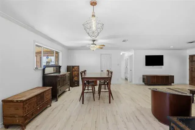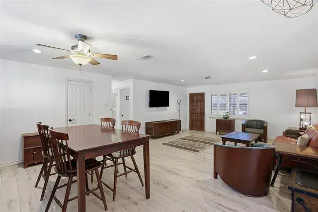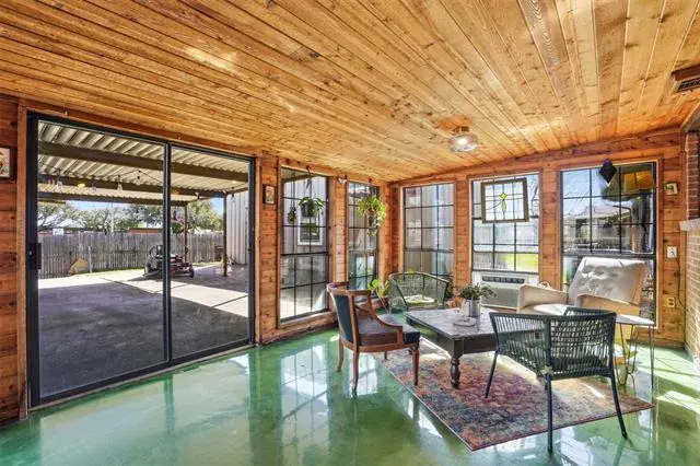 Cute and move-in ready, this 3-bedroom, 2-bath home in Wedgwood has so much to offer! The freshly updated kitchen features white Shaker cabinets and stainless-steel appliances, complemented by wood-look laminate flooring throughout. An enclosed patio garden room with mesmerizing metallic epoxy flooring creates the perfect spot for morning coffee, plant lovers, or an additional lounge area. 2025 roof and HVAC offer peace of mind. The oversized 1-car garage provides plenty of storage, but you’ll really love the 600sf shop with access from McCart Avenue, ideal for hobbies, projects, or extra workspace. With quick access to I-20, commuting and exploring Fort Worth is a breeze.