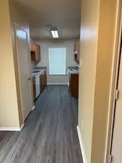 A musts see charming home with fenced back yard one car garage facing the front. Home has three bedroom and two bathrooms Galley Kitchen with plenty of cabinets and pantry country sink with disposal, Range, dishwasher also has separate dining room, full size washer and dryer hookups.