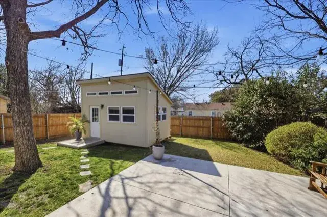 This home offers three bedrooms, two bathrooms, a two car garage, and a detached building that could be used as an office, bedroom or studio. Located in the desirable Paschal School District and just minutes from TCU. Enjoy the bright open floor plan including the kitchen with island, living room and dining area. The fenced backyard has a covered patio and a recently added outdoor shower and extended porch. Also recently added, is the 192 square foot building with a split AC Heat system for year round use.