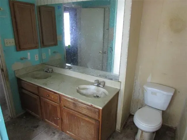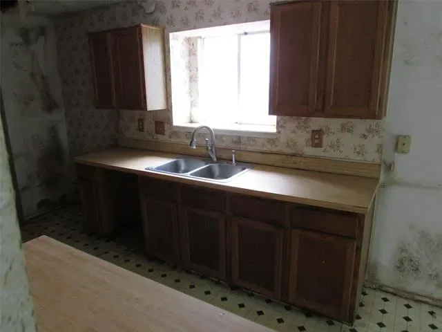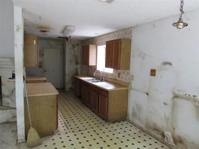 Home is vacant, and in rough shape, but very reparable! All floor coverings removed, except vinyl in kitchen and dining and baths. Home sat vacant for four years, and squirrels got into home and did major damages. Home needs new Heat and A-C unit, inside and outside, all new flooring, electrical repairs, cabinets, tape bed and texture repairs, painting, some outside trim replaced and painted. The flooring in workshop needs ventilation under, and repairs, plus the electrical supply line repaired from house. Comps show home should sell at about $45,000 more, with these repairs done. All appliances were removed, except vent hood. Garage is 18′ X 19′. Home is being sold where is, as is, and with all faults, by surviving spouse, who has not lived there in past six years. NO utilities will be turned on for inspections, and no further repairs will be done by Seller. Seller and Agent are unsure on schools, so please have Buyers check for themselves.