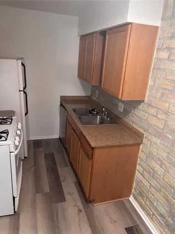 Welcome home to this beautifully renovated condominium at 6004 Westridge Lane Unit 705 in Fort Worth Texas 76116. Nestled in the Spanish Gardens community this residence offers approximately 806 square feet of modern comfortable living with fresh updates throughout.Step inside to discover durable wood look flooring that flows seamlessly through the open living areas creating a bright airy feel. The spacious living room features a stylish ceiling fan and large windows that fill the space with natural light while offering peaceful views of the surrounding greenery. Relax on the private patio just steps away.The kitchen is fully equipped with white appliances including a gas stove refrigerator and microwave. It showcases warm wood cabinetry speckled countertops and a stylish brick accent wall for added charm and functionality.The generous bedroom provides excellent storage with a large closet featuring built in shelving and dual hanging rods. The updated bathroom includes elegant white subway tile surrounding the bathtub shower combination a modern vanity and contemporary fixtures.This move in ready unit blends comfort convenience and style in a prime Fort Worth location. Perfect for those seeking an updated home with easy access to everything the area has to offer.