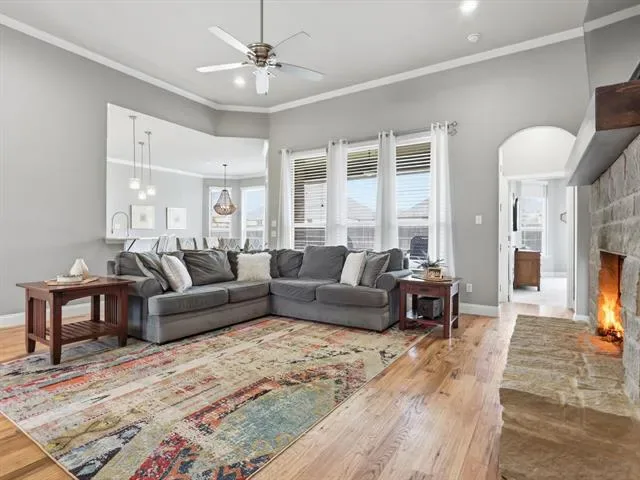 The home offers four spacious bedrooms and three full bathrooms, including a well designed Jack and Jill bath connecting two secondary bedrooms. The primary suite is a true retreat with a tiered tray ceiling, a spacious and luxurious primary bath, and an impressive walk in closet with extensive shelving and hanging space.