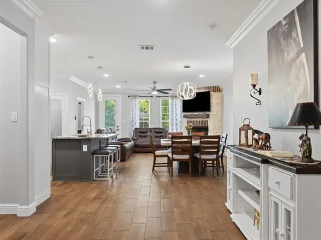 An exceptional home for buyers relocating or planning for multigenerational living, delivers in a way that feels both practical and thoughtfully designed. With 6 bedrooms and 2.5 bathrooms, the layout allows everyone to have their own space while still offering areas to come together, whether it’s around the wood-burning fireplace or in the main living areas finished with durable wood plank ceramic tile. Upstairs, LVP flooring continues the clean, low-maintenance feel, and foam installation in the walls and attic. There’s an extended patio that adds another layer of usable space that works well for morning coffee, evening wind-downs, or accommodating a full household. Throughout the home, details like crown molding, custom cabinetry, a glass front door, updated lighting and ceiling fans, and a Gray Glacier linear glass mosaic backsplash add personality without overwhelming the space, while polished porcelain tile bathrooms keep everything feeling fresh and refined. Outside, the extended concrete driveway makes day-to-day parking easier for multiple vehicles, and the 8-foot stained fence creates privacy you can actually enjoy, whether you''re hosting or just relaxing. The separate workshop with electricity is a major bonus for anyone who needs a dedicated space for projects, storage, or even a small business setup. The stone and brick exterior, arched brick entry, and stone walkway give the home a strong presence from the street and a sense of durability that holds up over time. Positioned in East Fort Worth, you’re minutes from I-820 and I-30, making commutes into downtown Fort Worth or Arlington straightforward, and close to everyday conveniences like grocery stores, dining, and retail within minutes. This is the kind of home that adapts to real life, whether that means accommodating extended family, working from home, or simply having room to grow. Schedule a showing to see how it fits what you need next.