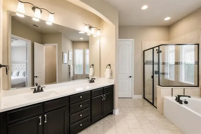 The spacious family room, highlighted by a breathtaking floor-to-ceiling fireplace, flows seamlessly into the oversized master suite. This sanctuary boasts a comfortable seating area, dual sinks, and a luxurious garden tub with a separate shower.