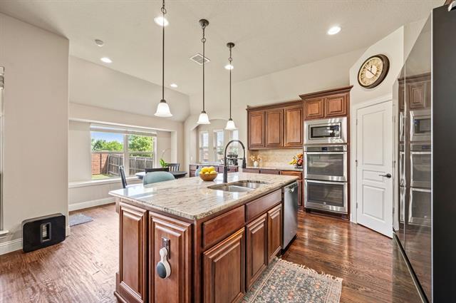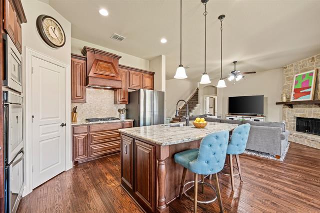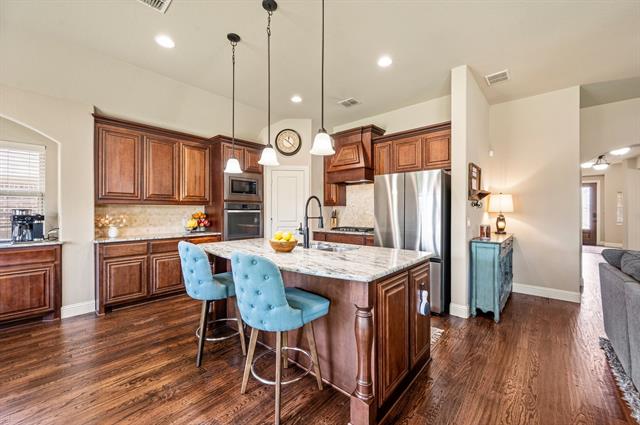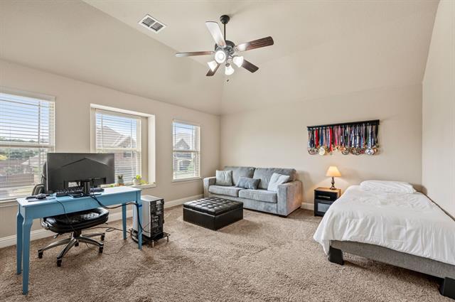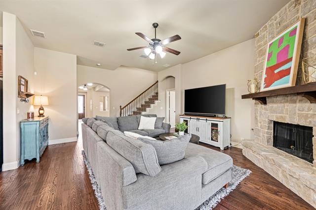 Located in the highly sought-after Steadman Farms community, this beautifully maintained home offers an ideal blend of space, comfort, and functionality. Residents enjoy access to a stunning neighborhood amenity center featuring a community pool, grilling area, and park. Inside, the home showcases rich hardwood floors and a versatile layout designed for both everyday living and entertaining. The main level features three bedrooms, including an oversized primary suite that serves as a true retreat with an expansive sitting area, large enough to function as a private living space. The main living area is anchored by a cozy wood-burning fireplace, adding warmth and charm. Upstairs offers an exceptional setup ideal for entertaining or multi-generational living, complete with a huge game room, a dedicated media room, and a versatile secondary living area that could easily serve as a second primary suite or guest retreat. Additional highlights include a 3-car garage, providing ample space for parking and storage, as well as a new roof (2021) and evident pride of ownership throughout. Step outside to a covered patio overlooking a large, grassy backyard with plenty of room to add a pool. With no rear neighbors, the outdoor space offers added privacy and a peaceful setting. A rare find in a prime location, this home combines generous living spaces, desirable features, and exceptional community amenities.