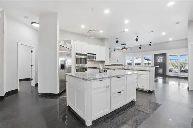The kitchen has been remodeled with high-end finishes, including granite countertops, a gas stovetop, and a commercial-grade fridge, idea for both cooking and entertaining. The open layout seamlessly connects the kitchen to the living room, offering a spacious and inviting area for relaxation and gatherings.