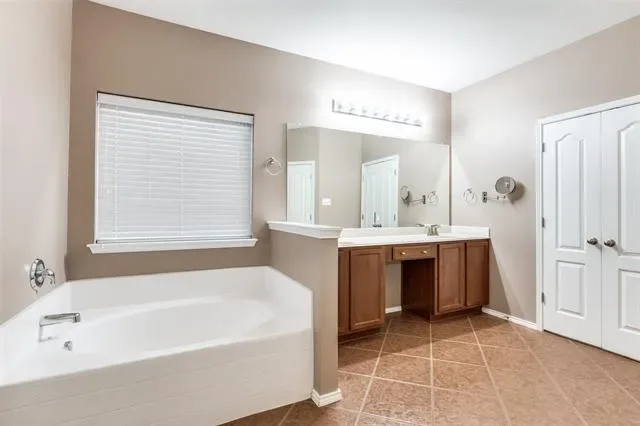 The home offers generously sized bedrooms and multiple bathrooms, including a primary suite with a large vanity, soaking tub, separate shower, and plenty of storage space. Additional bathrooms are thoughtfully designed with clean finishes and functionality in mind.