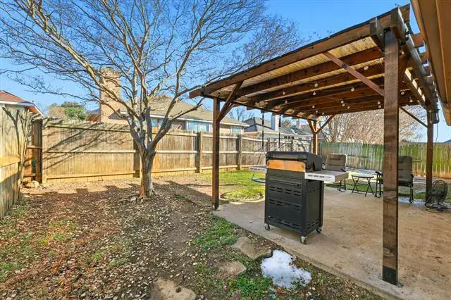 Fabulous Single Story Home with flexible and spacious floorplan. 3 bedroom, 2 bath, 2 car garage. Front office that could be flexable for 4th bedroom. Wonderfully sized kitchen with walk in pantry, island and breakfast bar, plenty of cabinets and counterspace and breakfast nook. Living room is open to kitchen and breakfast nook. Corner fireplace warms up the space in living room. Split floorplan with two bedrooms and full bathroom. Each bedroom is complete walk in closets. Primary bedroom with walk in closet and ensuite bathroom with extra closet space. Separate utility room. Private backyard with covered patio. Location has short travel to AA, Trinity Blvd, Hwy 360 and Hwy 183. Buyer(s) and buyer(s) agents responsibility to verify all information including but not limited to square footage, room measurements, schools, utility.