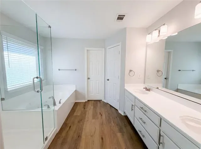 Welcome to 4220 Boulder Park Dr, a home that has been tastefully updated with fresh interior paint and new flooring throughout. The living room is warm and inviting, featuring a cozy fireplace. The kitchen is a chef’s dream, boasting new appliances, all of which are stainless steel, and a convenient kitchen island for extra prep space. The primary bedroom is a true retreat, complete with a walk-in closet. The primary bathroom provides double sinks and a separate tub and shower for ultimate relaxation. Outside, you’ll find a covered patio perfect for entertaining and a fenced-in backyard for privacy. This home is a must-see, providing a blend of comfort and modern updates. Home comes with a 100-Day Home Warranty and a 7-Day Home Test Drive to move in 7 days early for free