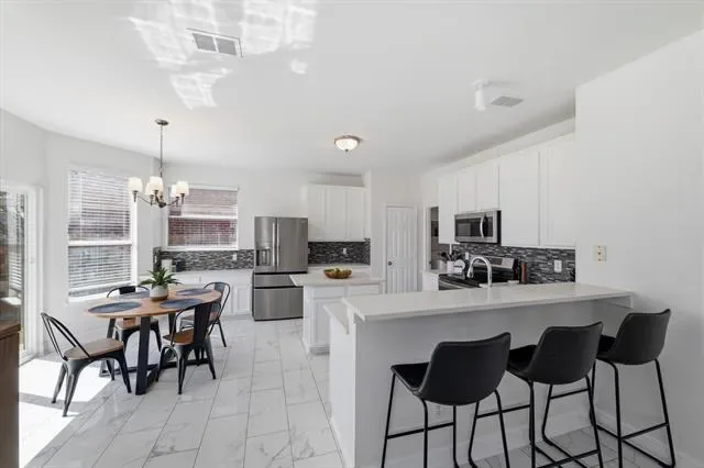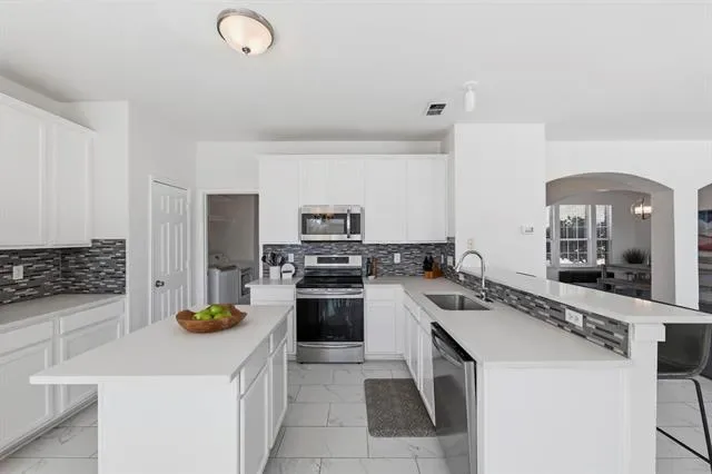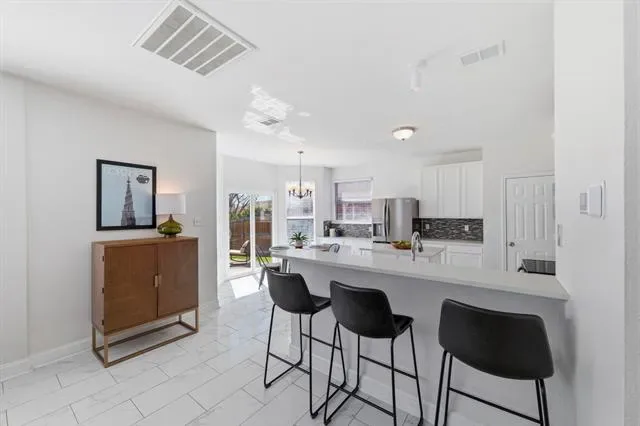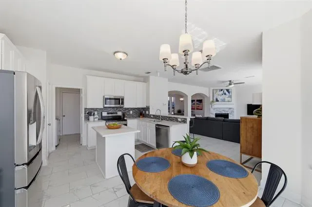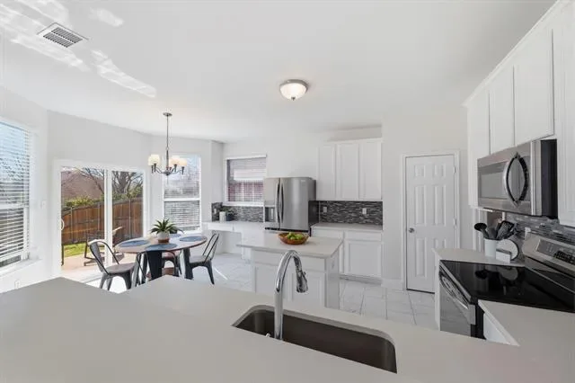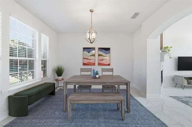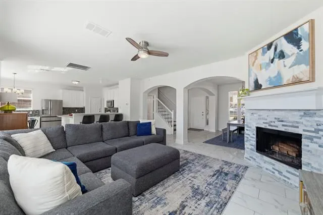Move-in ready with oh so many updates, this charming home offers a ROOF and HVAC system that were both replaced in 2023. Inside, light and bright paint and tile floors are enhanced by the expansive windows downstairs that allow natural light to dance throughout. Open-concept living area is perfect for family or hosting with a large formal dining room, cozy wood-burning fireplace, tall ceilings, and bar seating. The kitchen, as beautiful as it is practical, features quartz countertops, island, breakfast nook, and appliances updated in 2023. Upstairs, the primary suite features a lovely bay window, generous walk-in closet, garden tub, dual vanities, and separate standing shower. An oversized family room, large enough to serve as a media room, home gym, playroom, or dedicated home office, gives the flexibility to adapt the space to your lifestyle. Refrigerator, washer, and dryer are negotiable with a good offer. Residents enjoy access to a community pool, park, playground, and walking trails, with convenient proximity to all that Fort Worth has to offer.