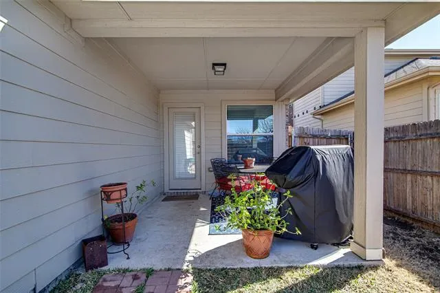 The private primary suite includes a garden tub, separate shower, and large walk-in closet. Secondary bedrooms are generously sized with great storage. Enjoy outdoor living under the covered patio overlooking a landscaped backyard with sprinkler system. Additional highlights include 2-car attached garage, Smart home capability, Access to community pool and sidewalks. Situated on a landscaped beautiful lot in Fort Worth, this home offers convenience to shopping, dining, and major roadways while maintaining neighborhood charm.