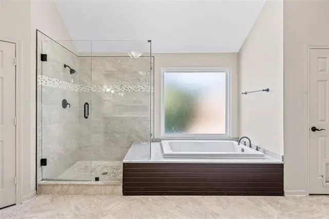 Welcome to this inviting home featuring a formal dining room and sitting room, along with a spacious main living area highlighted by a large fireplace. The kitchen offers bar seating with a view into the living room, creating a seamless flow for gatherings. The primary bedroom boasts elegant tray ceilings and an ensuite bath with dual sinks, a soaking tub, and a separate walk-in shower. Outside, enjoy a fully fenced backyard with a touch of green space and a beautiful pool for relaxing or entertaining.