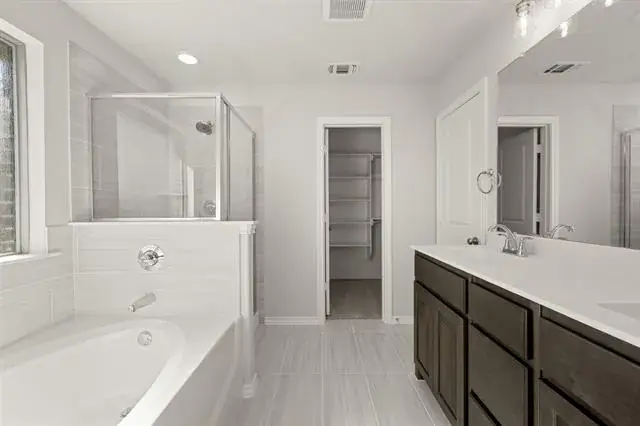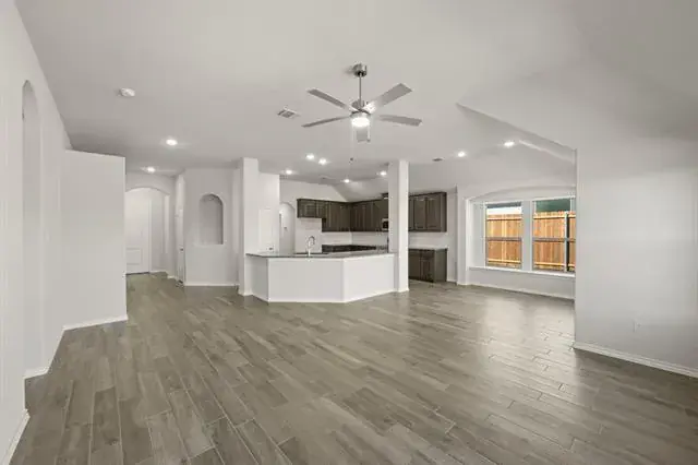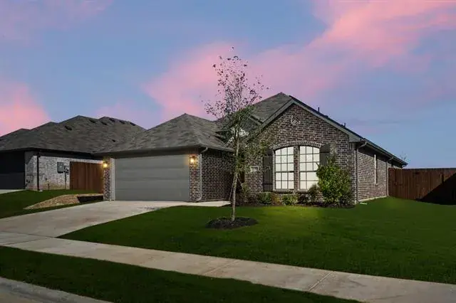 MLS# 21095682 – Built by Risewell Homes – Ready Now! ~ This home strikes the perfect balance of function and flow, offering three spacious bedrooms and two full bathrooms all on one level. As you enter through the foyer, you’re welcomed into an open-concept living space where the kitchen, family room, and nook come together beautifully for both everyday life and entertaining. The kitchen features a unique angled island with bar seating, abundant counter space, and direct access to a walk-in pantry and utility room. The secluded primary suite at the back of the home offers privacy and comfort with a walk-in closet, a soaking tub, separate shower, and dual sink vanity in the en-suite bath. Secondary bedrooms are tucked toward the front of the home with a shared full bath, ideal for guests. Enjoy your mornings or unwind in the evenings on the covered patio just off the nook. A two-car garage and smart layout make this home as practical as it is charming.