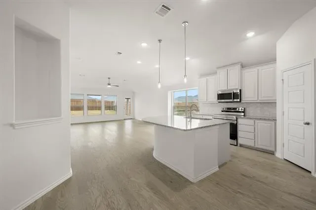 MLS# 21132895 – Built by Risewell Homes – Ready Now! ~ This single-story home in Fort Worth, TX offers a well-balanced layout designed for comfort and functionality, featuring an open-concept kitchen, dining nook, and family room that create a bright and connected living space ideal for entertaining. The private owner’s suite is set apart with a spacious bedroom, walk-in closet, and a well-appointed bath with dual sinks, soaking tub, and separate shower. Two secondary bedrooms are positioned near a shared full bath, while a dedicated study near the foyer provides flexible space for a home office or hobby room. Additional highlights include a welcoming entry, utility room with garage access, ample storage throughout, a two-car garage, and an optional covered patio that extends the living area outdoors.