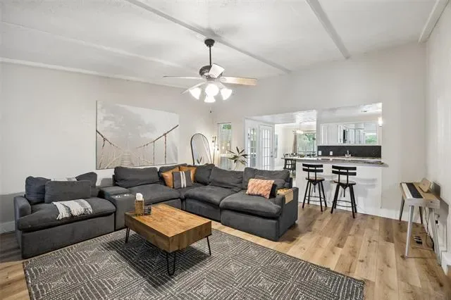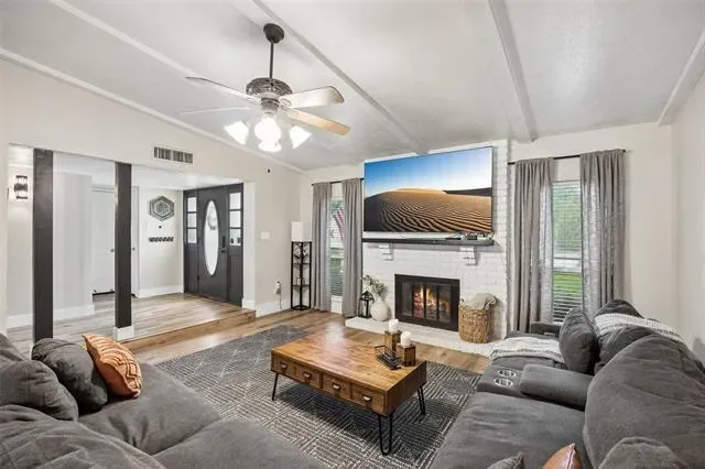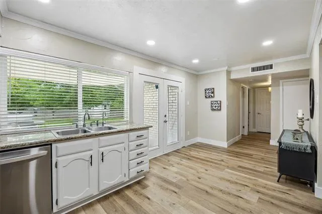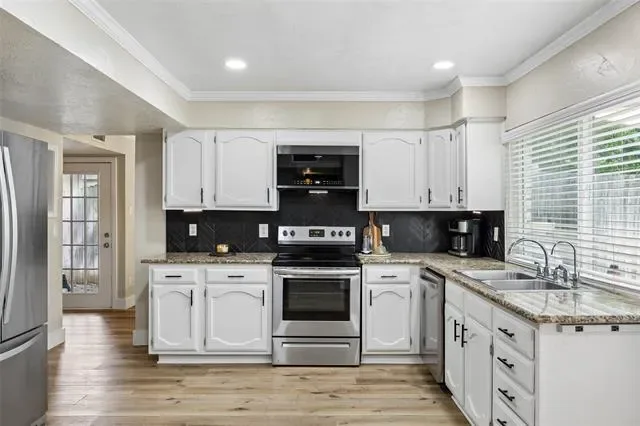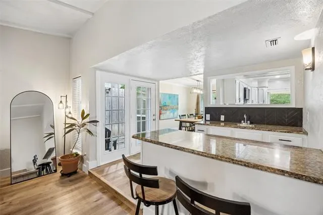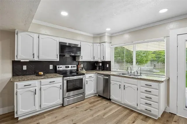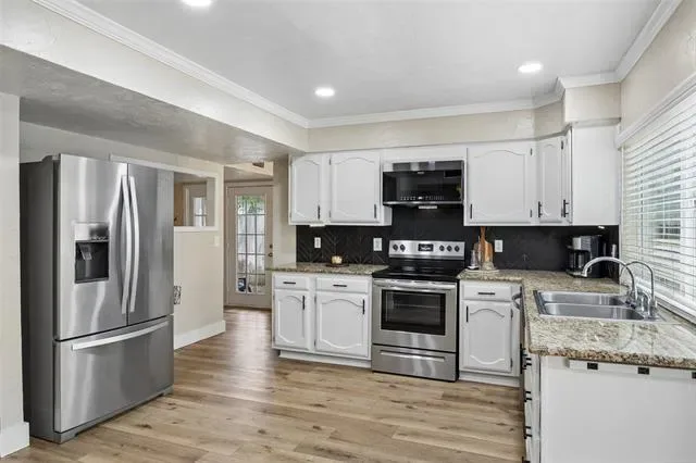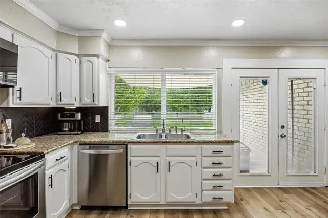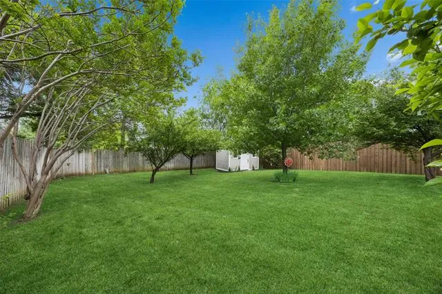 Experience comfort, style, and privacy in this beautifully refreshed 3 bedroom, 2 bath home, thoughtfully updated from top to bottom. Inside, new flooring and fresh paint flow throughout, complemented by modern light fixtures in every room. The open layout connects living spaces with ease, creating a bright and inviting atmosphere for both everyday living and entertaining. The primary bedroom is a true retreat, featuring two walk-in closets and a spa-inspired bath with an oversized slate-tiled bathtub—perfect for relaxing at the end of the day. Updated bathrooms and carefully selected finishes enhance the home’s functionality and modern appeal. Major system enhancements, including a reverse osmosis water filtration system, extra attic insulation, and a regularly maintained HVAC system, provide energy efficiency and peace of mind. Outside, the large, private backyard is surrounded by 8-foot fencing and features mature trees, including fruit trees, for beauty, shade, and seasonal enjoyment. The well-maintained landscaping provides space for relaxation, gardening, or entertaining, and an electrically equipped shed offers practical storage or hobby space. Permanent outdoor lighting adds convenience and year-round appeal. Conveniently located 20–30 minutes from downtown Fort Worth and the historic Fort Worth Stockyards, the home provides easy access to shopping, dining, and entertainment along I-35 and Beach Street. Dallas Fort Worth International Airport is approximately 23 miles away, with Fort Worth Alliance Airport and Texas Motor Speedway within 10–15 miles. Tastefully updated, well maintained, and thoughtfully designed, this home offers a perfect blend of comfort, function, and convenience. 3D tour available online!