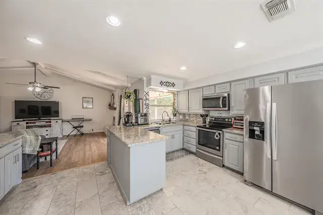 Beautifully Updated 3-Bedroom, 2-Bath Home in Keller ISD — Move-In Ready! Welcome home to this charming property offering the perfect blend of style, comfort, and convenience in the highly sought-after Keller ISD. Step inside to an inviting living area with vaulted ceilings and hardwood floors that flow seamlessly throughout, creating a warm and open feel. The spacious kitchen is perfect for entertaining, featuring tile flooring, stainless steel appliances, ample cabinetry, and generous counter space for meal prep and gatherings. The primary suite provides the ideal retreat with two walk-in closets and a beautifully updated bathroom. Two additional bedrooms offer flexibility for family, guests, or a home office. Outside, enjoy a large backyard ideal for relaxing or weekend barbecues. Additional updates include energy-efficient windows, a new roof with a 25-year warranty, and a new HVAC system (inside and out)—ensuring peace of mind for years to come. This home checks every box—prime location, great schools, and thoughtful upgrades. Don’t miss your chance to make it yours—it’s truly a must-see!